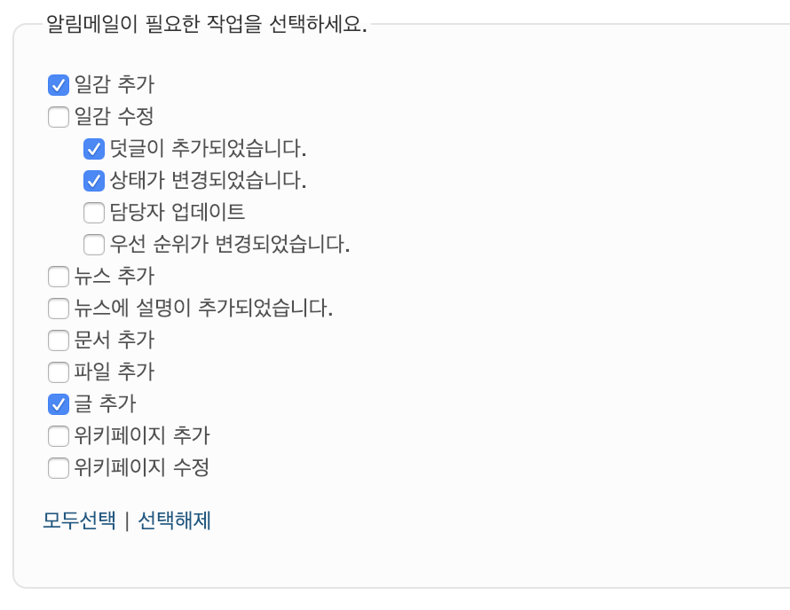 메일 알람 설정 : 내가속한 모든 프로젝트로부터 모든 메일 받기