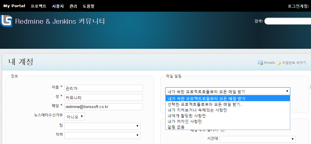 로그인계정에 가시면 메일알림 설정이 있습니다.