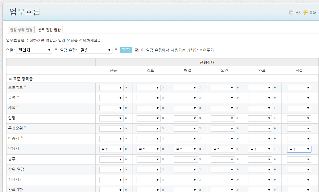 담당자를 필수로 하는 것은 상태값에 따라 필수여부를 줄 수 있는 기능을 사용해 보시는게 어떨런지요?